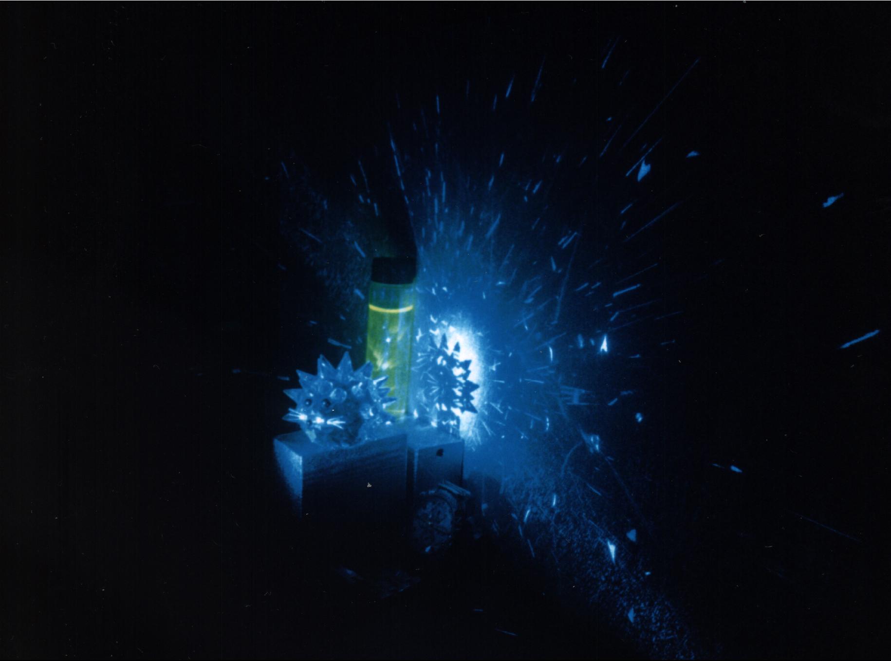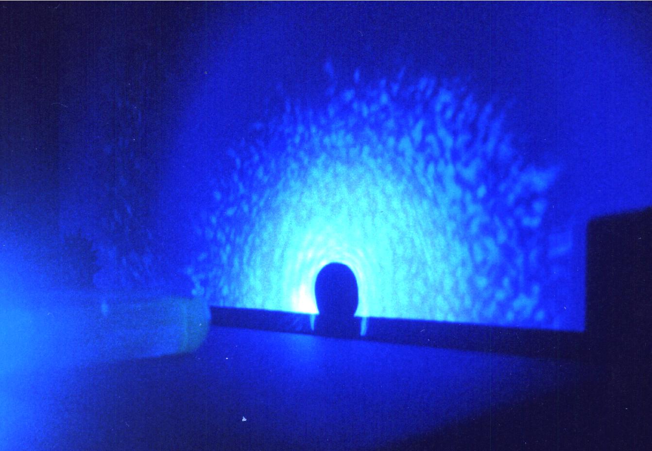 Illuminating fluorescent liquids and glass parts with a collimated beam yields interesting effects ...