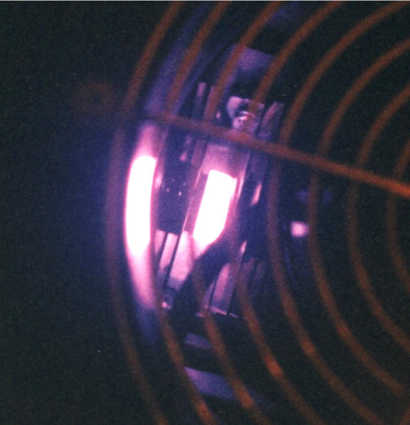 ... inside such a argon ion laser there are infernal conditions: The ghastly glow results from the lasing plasma which is at several thousand degrees C: